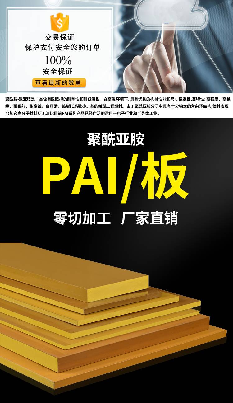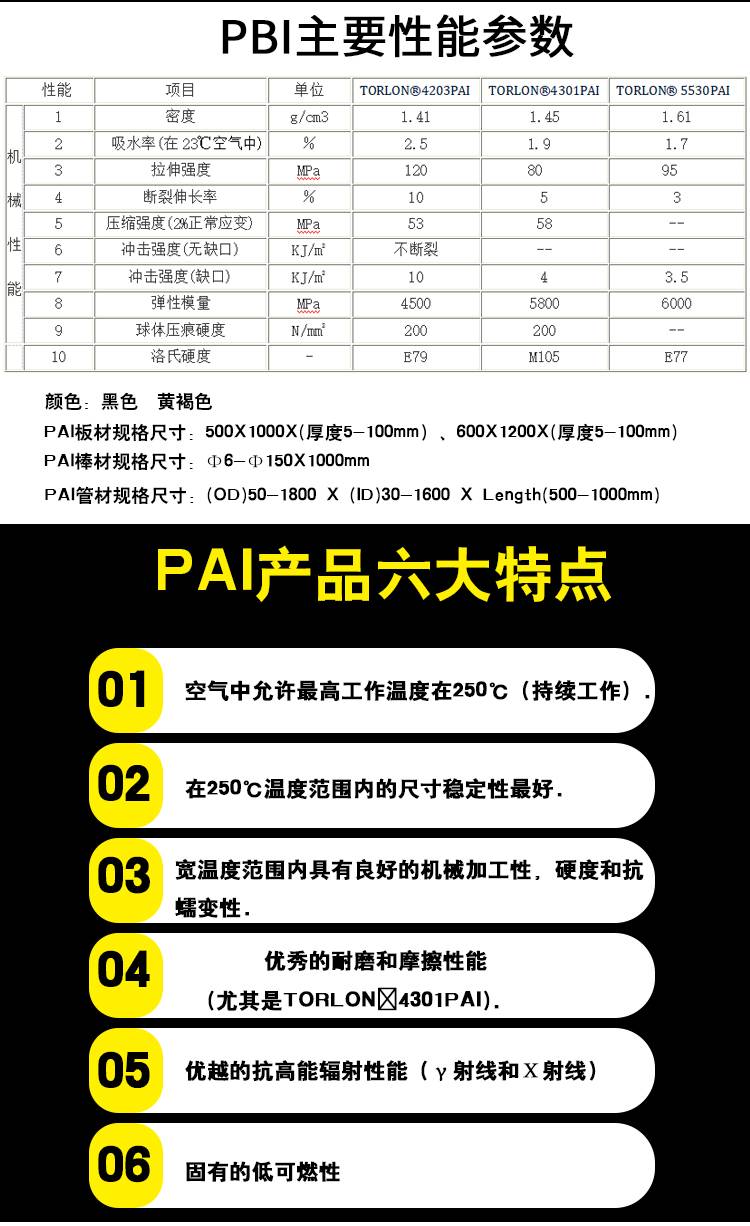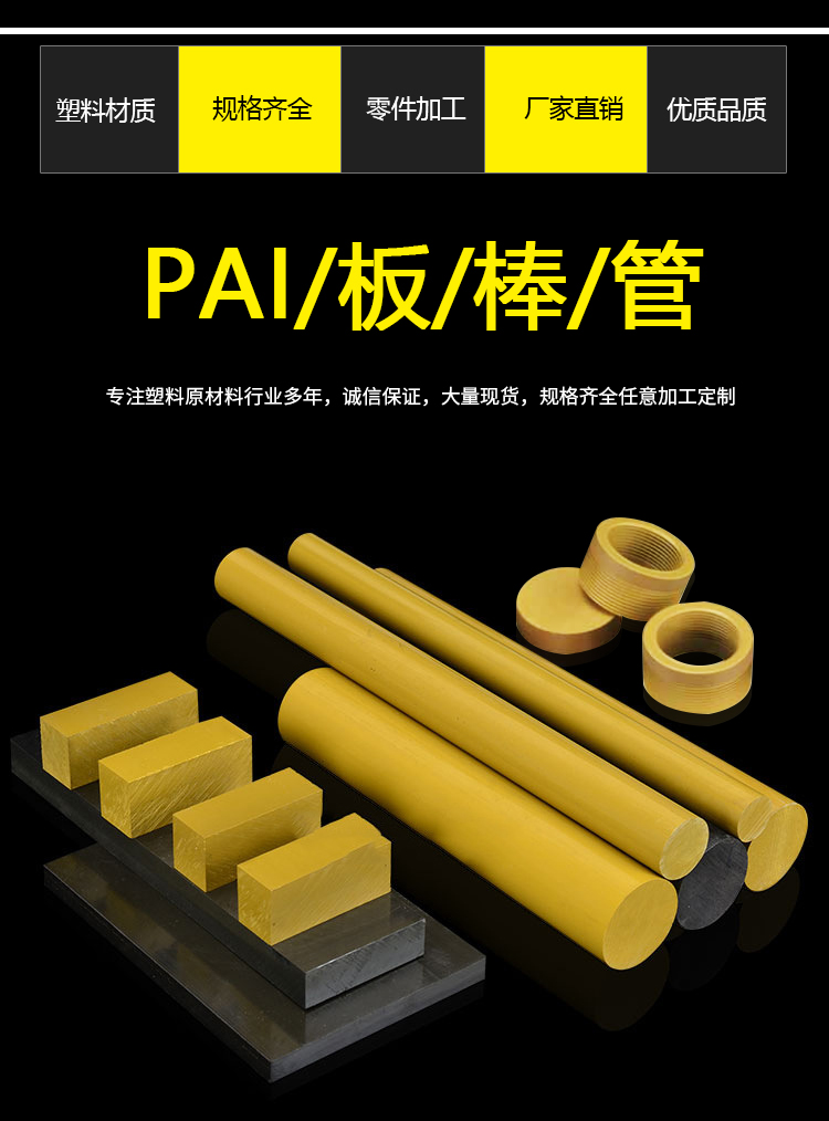 PAI(聚酰胺-酰亞胺)是一類含有酰胺基的新型工程塑料。由于聚酰亞胺分子中具有十分穩定的芳雜環結構,使其表現出其它高分子材料所無法比擬的耐熱性和耐低溫性和耐低溫性,在高溫環境下,具有優秀的機械性能和尺寸穩定性、高強度、高絕緣、耐輻射、自潤滑、熱膨脹系數小。廣泛的運用于電子行業和半導體工業。